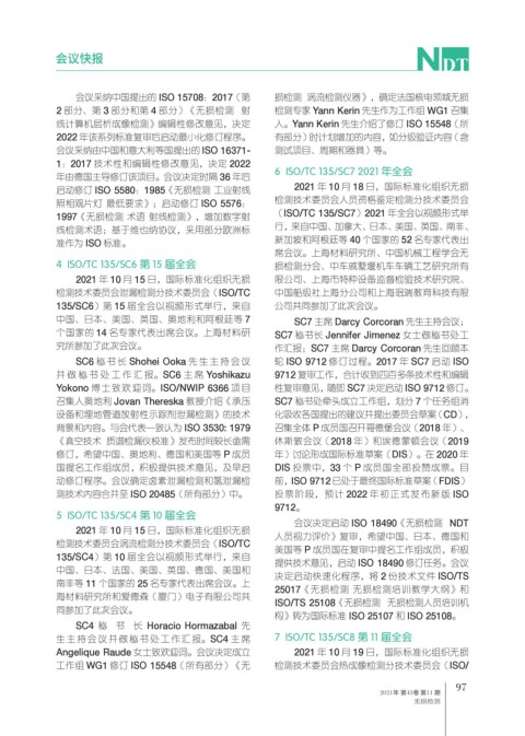 1997《无损检测 术语 射线检测》,增加数字射 (ISO/TC 135/SC7)2021 年全会以视频形式举