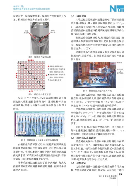 损充满水后, 可采用该系统检测组件是否破损, 若存 热过程中持续对超声信号进行监控, 高温试验结果