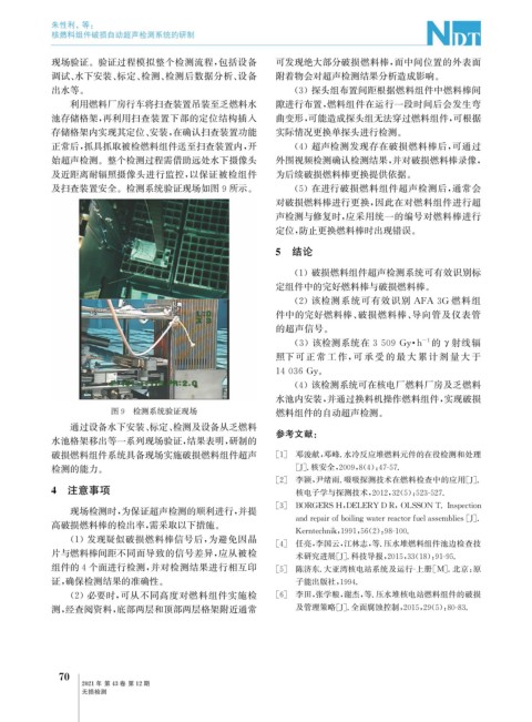 及扫查装置安全。检测系统验证现场如图9所示。 ( 5 )在进行破损燃料组件超声检测后, 通常会
