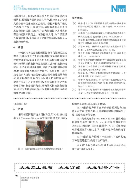 针对民用飞机无损检测数据电子化管理的迫切 [ 5 ] 张贤俊, 李鹏. 无损检测信息管理系统[ J ] . 石油化工