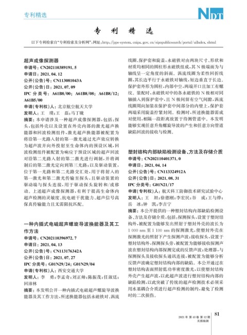 动。上述超声成像探测器, 有利于提高生命体内 申请( 专利权) 人: 航天科工防御技术研究试验中心