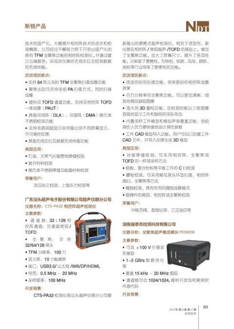 测精度,公司经过不懈努力终于开发出国产化的 仪器在相控阵 / 常规超声 /TOFD 的基础上,增加