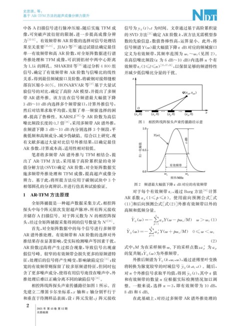 噪比频段长度的0.7倍 [ 19 ] , 采用多频带 AR 谱外推, 图1 相控阵线阵探头声束传播路径示意