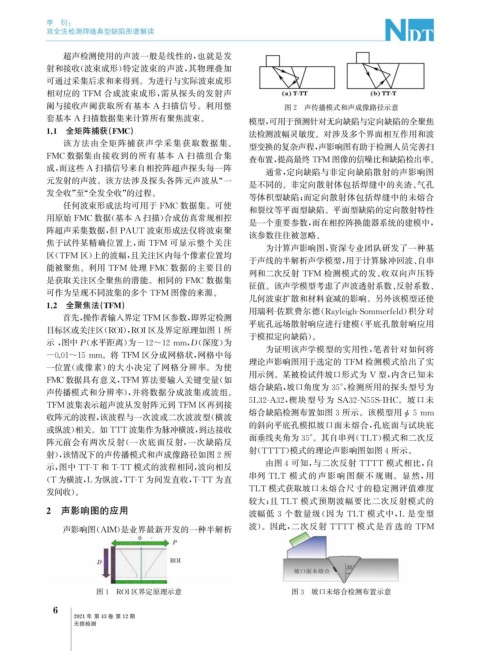 阑与接收声阑获取所有基本 A 扫描信号。利用整 图2 声传播模式和声成像路径示意