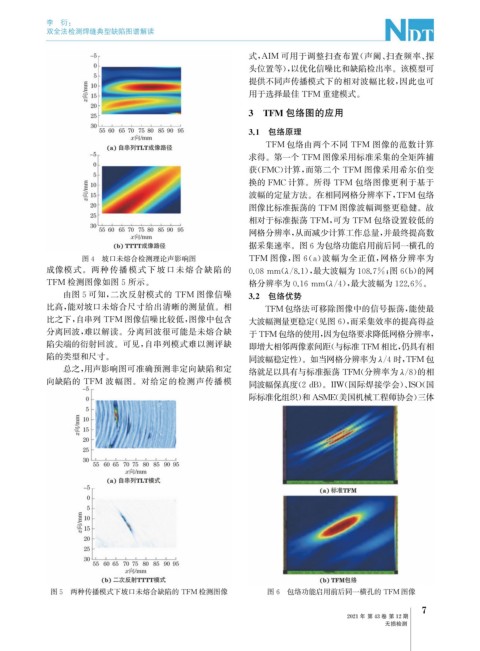 陷尖端的衍射回波。可见, 自串列模式难以测评缺 即增大相邻两像素间距( 与标准 TFM 相比, 仍具有相