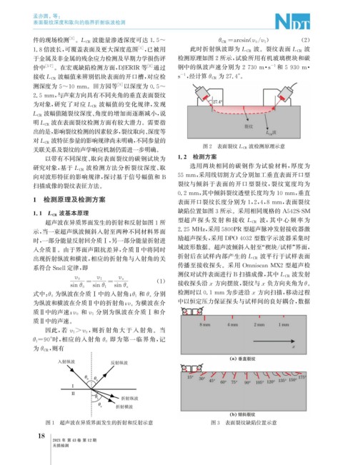 图1 超声波在异质界面发生的折射和反射示意 图3 表面裂纹缺陷位置示意