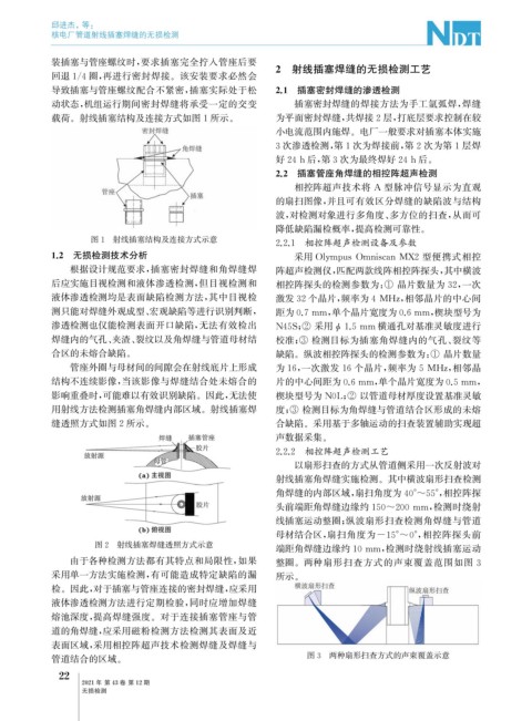 焊缝内的气孔、 夹渣、 裂纹以及角焊缝与管道母材结 校准; ③ 检测目标为插塞角焊缝内的气孔、 裂纹等