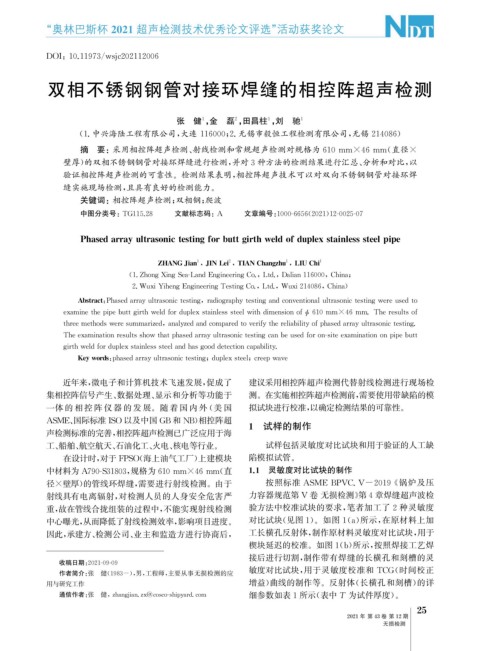 关键词: 相控阵超声检测; 双相钢; 爬波