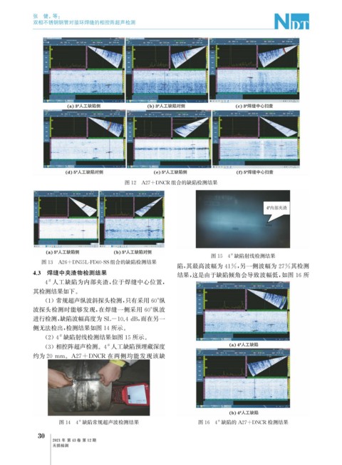 图14 4 缺陷常规超声波检测结果 图16 4 缺陷的 A27+DNCR 检测结果