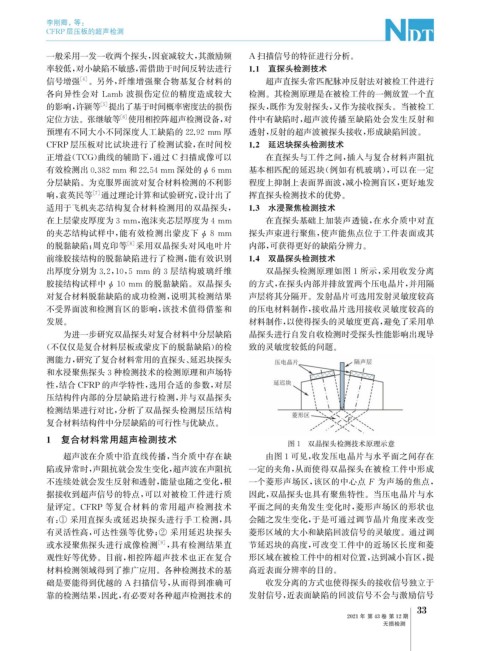 1 复合材料常用超声检测技术 图1 双晶探头检测技术原理示意