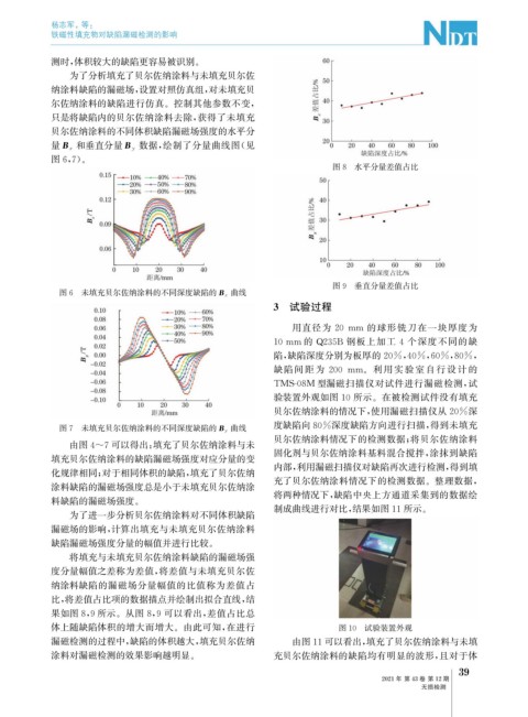 漏磁检测的过程中, 缺陷的体积越大, 填充贝尔佐纳 由图11可以看出, 填充了贝尔佐纳涂料与未填