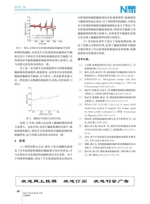 缺陷的漏磁信号幅值, 并计算出二者差值和差值占 特性研究[ J ] . 中国安全科学学报, 2017 , 27 ( 4 ): 82-86.