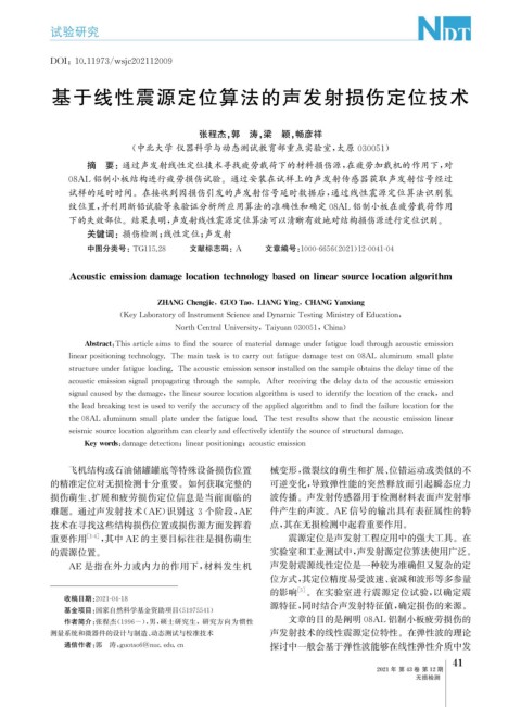 技术在寻找这些结构损伤位置或损伤源方面发挥着 点, 其在无损检测中起着重要作用。