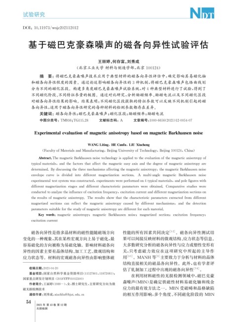 变化的一种现象, 其在某些宏观方向上易于磁化, 最 果可以间接反映材料的微观结构、 应力状态等信息。