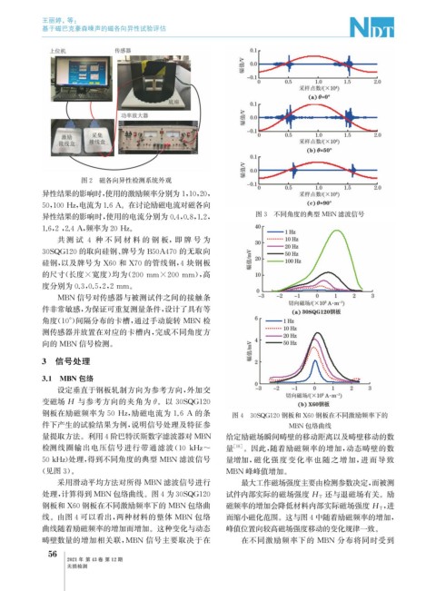50kHz ) 处理, 得到不同角度的典型 MBN 滤波信号 量增加, 磁化强度变化率也随之增加, 进而导致
