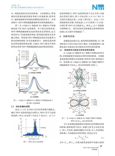 和磁化强度变化率的影响。与硅钢相比, 管线 包络线峰值与 MBN 包络线的两个交点为界, 对磁