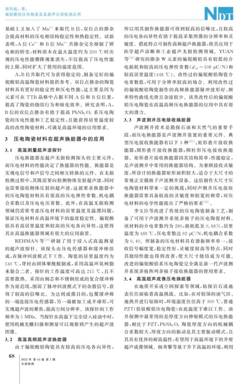 合系数以及压电电压常数。此外, 在高温无损检测 电材料的电学性能提出了严格的要求 [ 22 ] 。