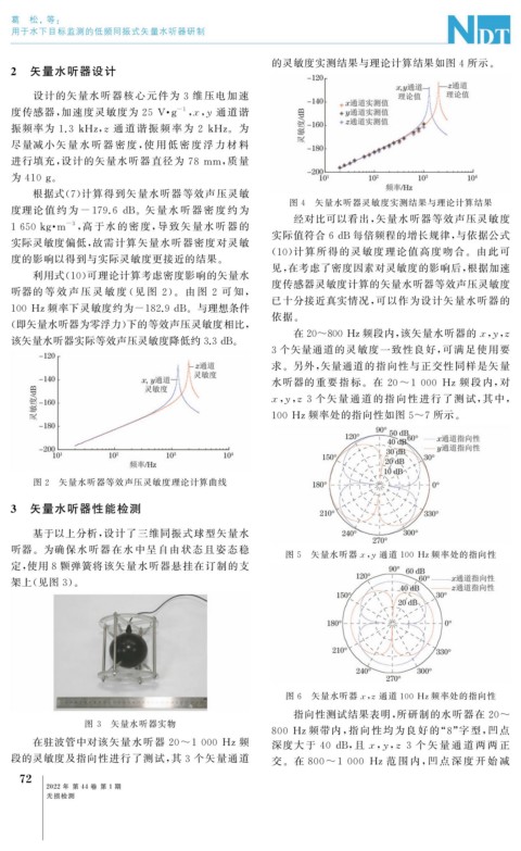 段的灵敏度及指向性进行了测试, 其 3 个矢量通道 交。在 800~1000 Hz范 围 内, 凹 点 深 度 开 始 减