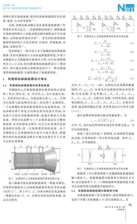1.1 双激励纵振换能器机电等效电路 式中: S e1= S e2= S 1=π R 1 , 为两组压电晶堆的横截