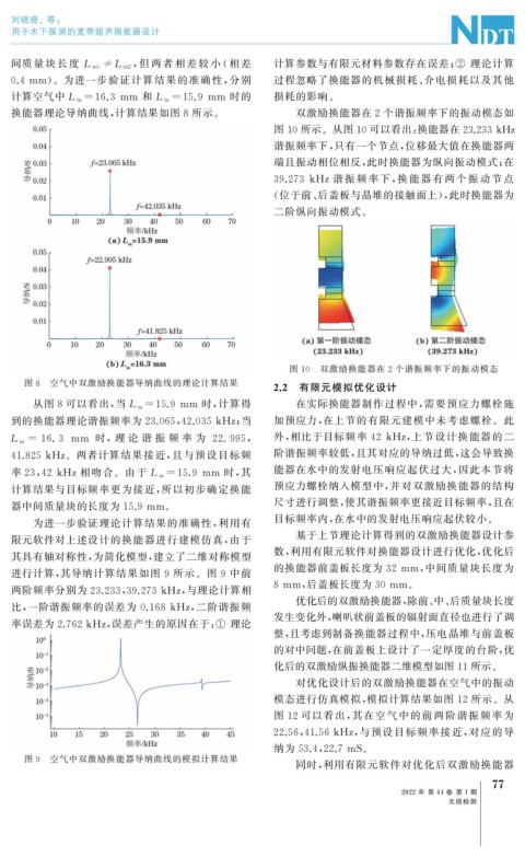到的换能器理论谐振频率为 23.065 , 42.035kHz ; 当 加预应力, 在上节的有限元建模中未考虑螺栓。此