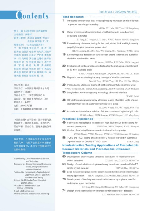 Published by: Nondestructive Testing Editorial 66 Lead metaniobate piezoelectric ceramics and its ultrasonic nondestructive