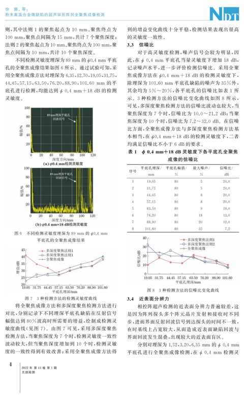 法则2的聚焦起点为10mm 、 聚焦终点为100mm , 聚 3.3 信噪比