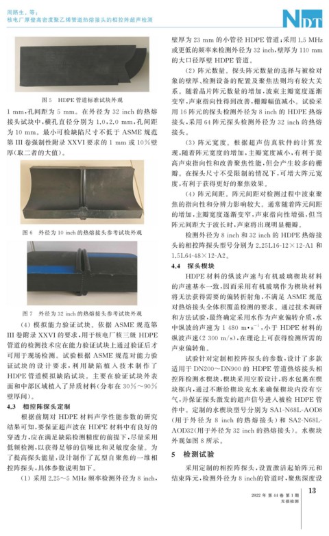 壁厚为23mm 的小管径 HDPE 管道; 采用1.5MHz
