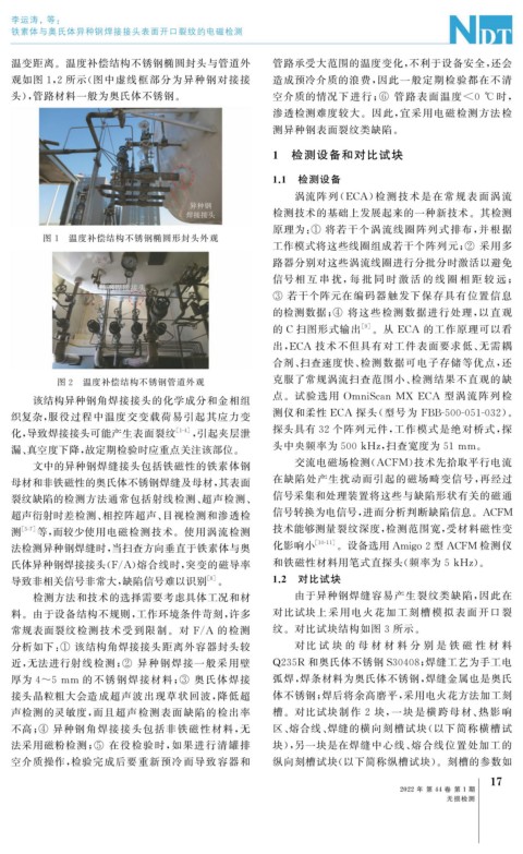 织复杂, 服役过程中温度交变载荷易引起其应力变 测仪和柔性 ECA 探头( 型号为 FBB-500-051-032 )。