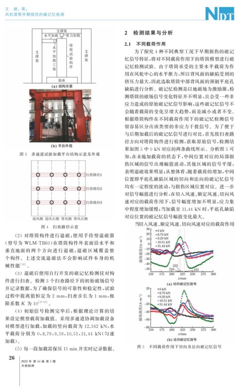 忆信号特征, 将对不同载荷作用下的塔筒模型进行磁