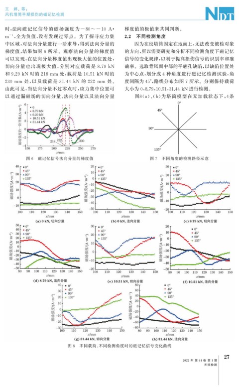 以 通过漏磁场的切向分量、 法向分量以及法向分量 图 8 ( a )、( b ) 为塔筒模型在无加载状态下, 4 条