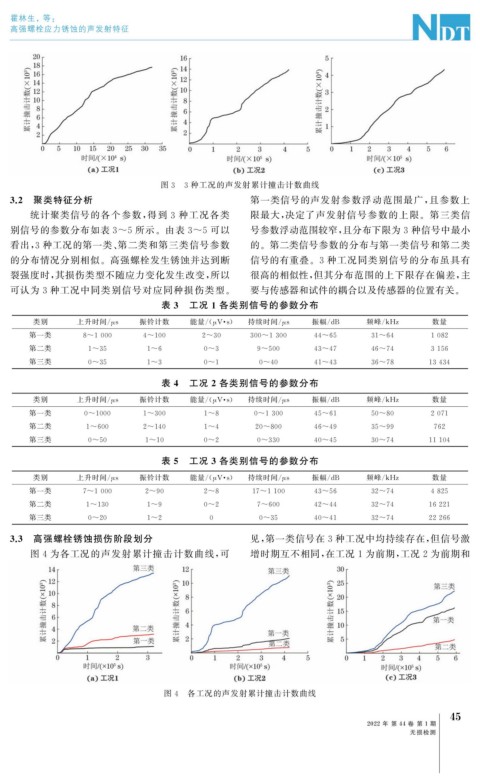 3.3 高强螺栓锈蚀损伤阶段划分 见, 第一类信号在 3 种工况中均持续存在, 但信号激