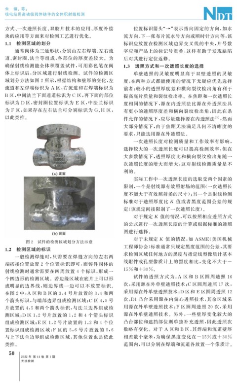 确保射线检测能全体积覆盖试件, 可用彩色笔在阀 1.3 透照方式和一次透照长度的选择