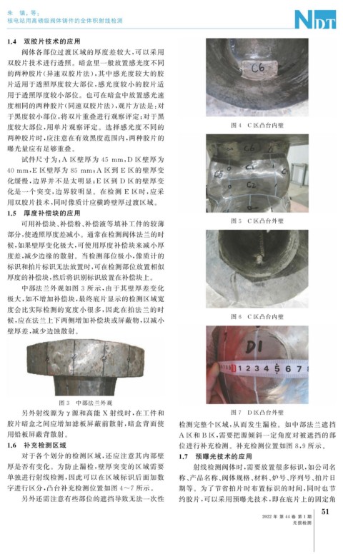 厚是否有变化。为防止漏检, 壁厚突变的区域需要 射线检测阀体时, 需要放置很多标识, 如公司名