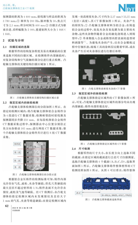 凸轮轴支撑体检测部位的分段如图 2 所示。在 内部缺陷, 铸件内部形貌良好。
