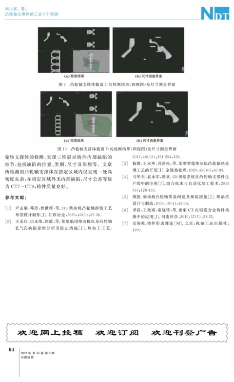细节, 包括缺陷的位置、 类别、 尺寸及形貌等。文章 [ 3 ] 杨静, 王永坤, 刘高松, 等 . 某型智能柴油机凸轮轴热处