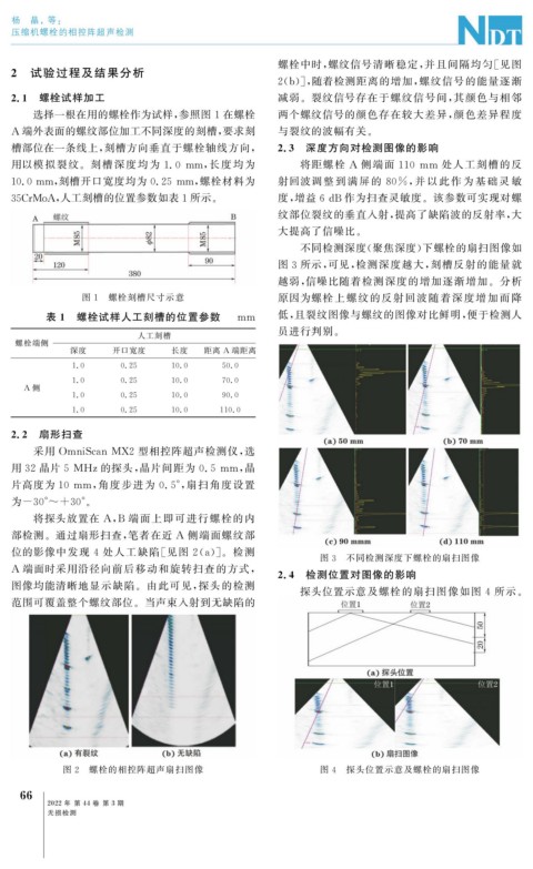 表 1 螺栓试样人工刻槽的位置参数 mm 低, 且裂纹图像与螺纹的图像对比鲜明, 便于检测人