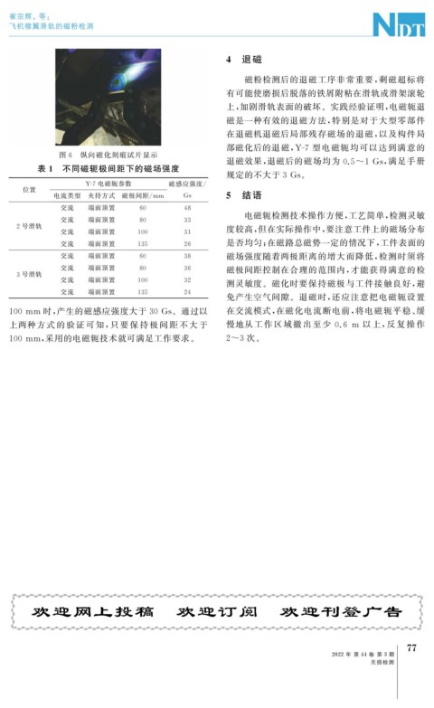 磁粉检测后的退磁工序非常重要, 剩磁超标将