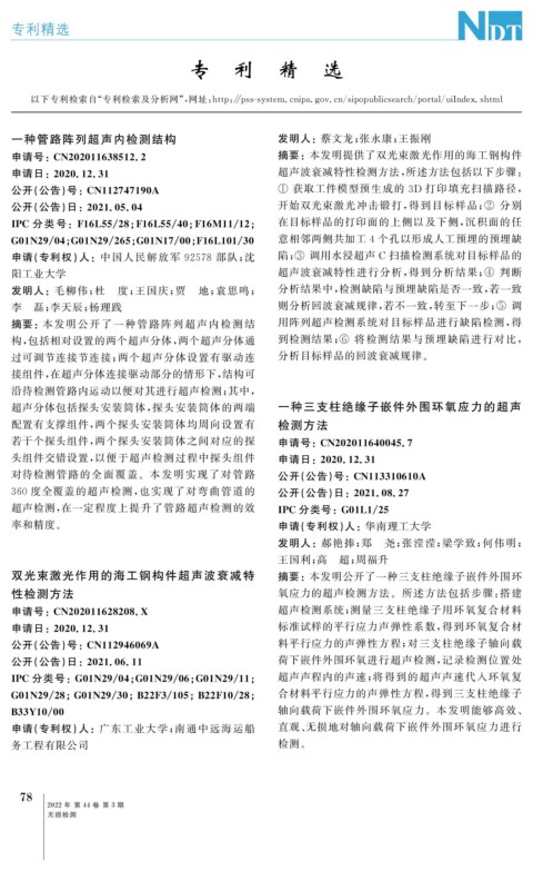 超声检测, 在一定程度上提升了管路超声检测的效 IPC 分类号: G01L1 / 25