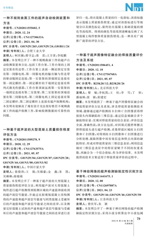 发明人:柯庆镝; 蒋守志; 张 雷; 王万喜; 李皖鹏 一种基于超声图像特征融合的焊接质量评价