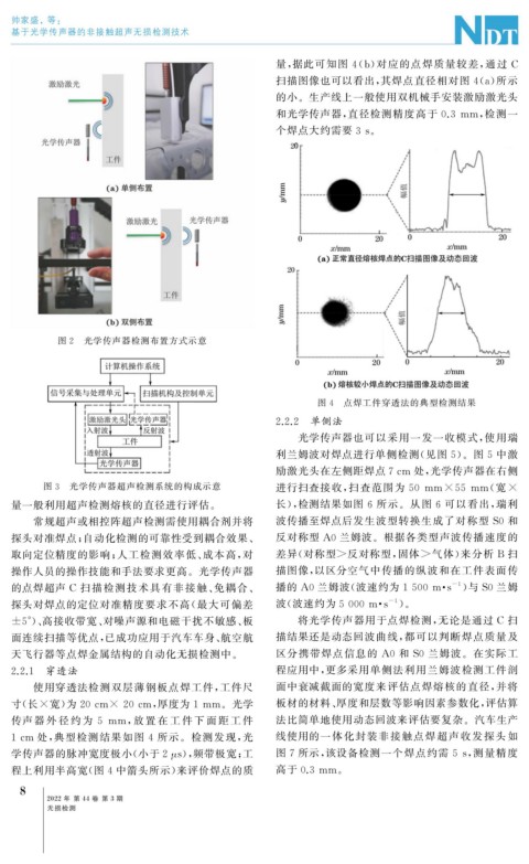 图 3 光学传声器超声检测系统的构成示意 进行扫查接收, 扫查范围为 50 mm×55 mm ( 宽 ×
