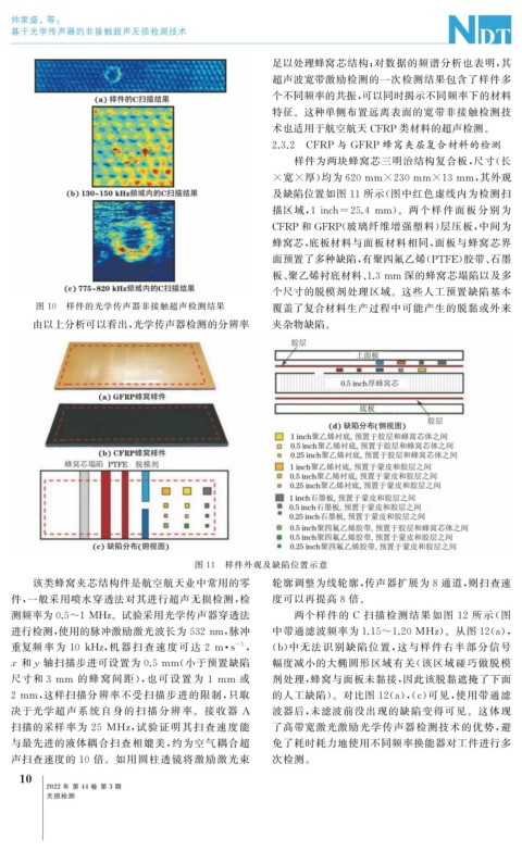 图 10 样件的光学传声器非接触超声检测结果 覆盖了复合材料生产过程中可能产生的脱黏或外来