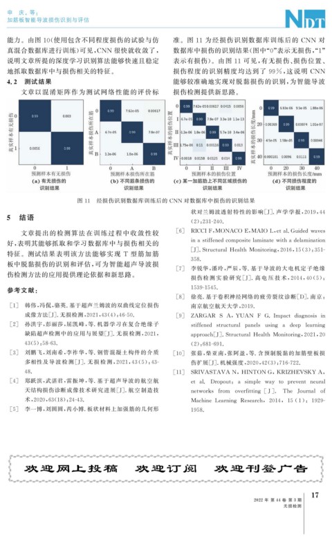 文章以混淆矩阵作为测试网络性能的 评价标 损伤检测提供新思路。