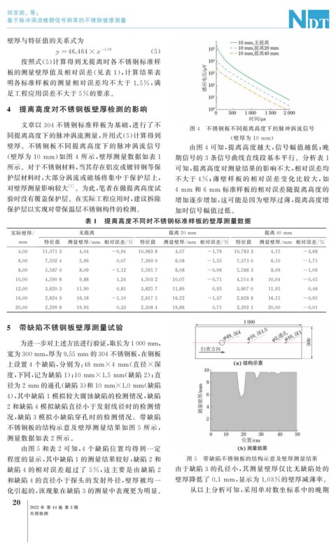 表 1 提离高度不同时不锈钢标准样板的壁厚测量数据