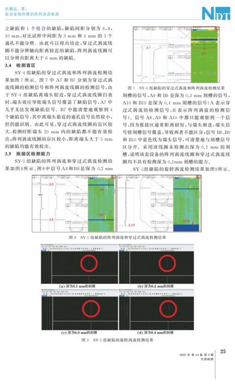 SY-5 组缺陷的阵列涡流和穿过式涡流检测结 圈均不具有检测深为 0.1mm 刻槽的能力。