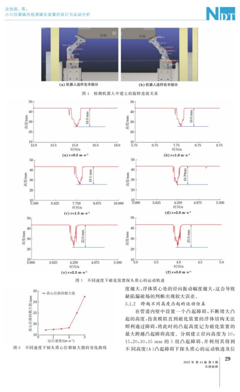 图 6 不同速度下探头质心位移极大值的变化曲线 不 同高度( h ) 凸起障碍下探头质心的运动轨迹及位