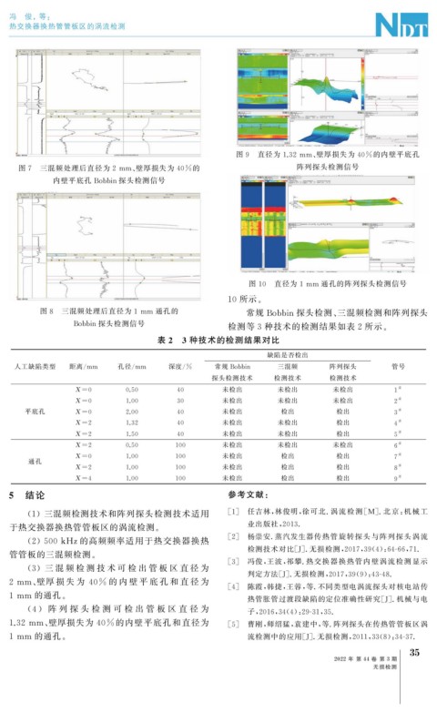 Bobbin探头检测信号 检测等 3 种技术的检测结果如表 2 所示。