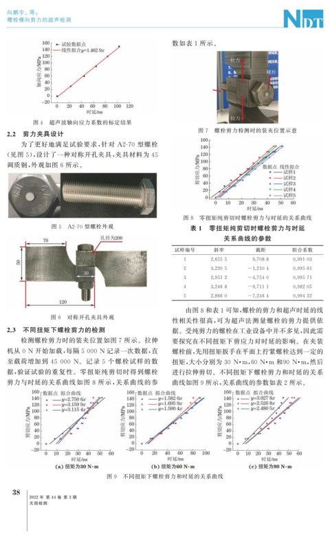 2.3 不同扭矩下螺栓剪力的检测 据。受纯剪力的螺栓在工业设备中并不多见, 因此需