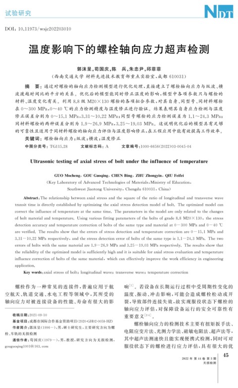 Ke ywords : axialstressofbolt ; lon g itudinalwave ; transversewave ; tem p eraturecorrection
