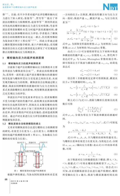 势 [ 5-8 ] 。目前, 有不少学者对超声法评估螺栓轴向应 一方向的应力σ 且纵波、 横波的传播方向与应力方
