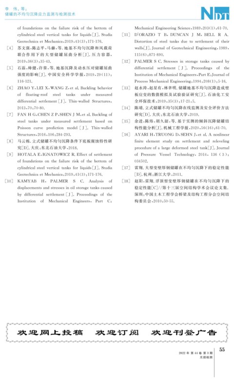 [ 10 ] KAMYAB H , PALMER S C. Anal y sis of [ 18 ] 赵阳, 雷翔 . 浮顶型变壁厚钢储罐在不均匀沉降下的